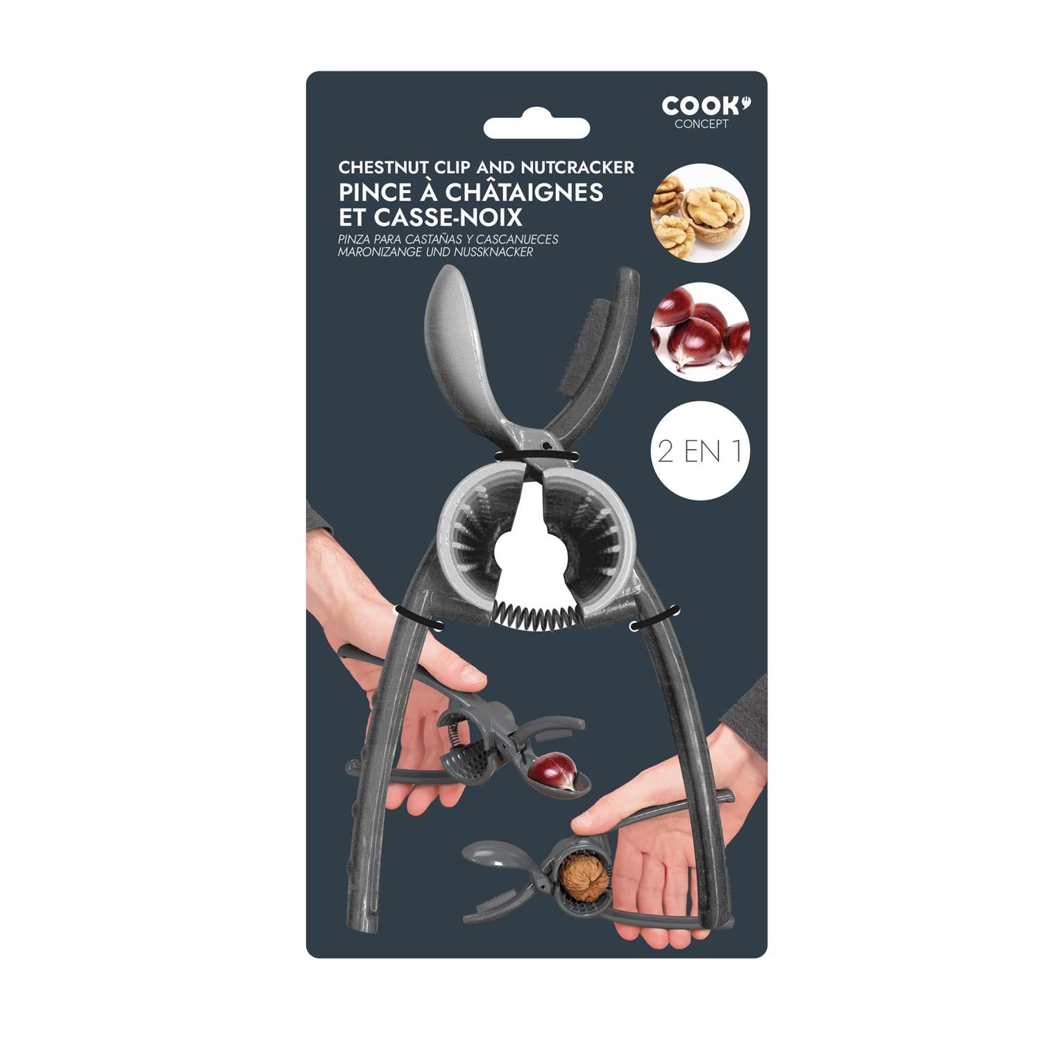 The Chestnut Clip and Nutcracker combines safety and efficiency for handling and cracking chestnuts. Designed to securely hold chestnuts during preparation, the clip minimizes risk of injury while the sturdy nutcracker applies precise pressure to crack shells without damaging the nut inside. Crafted from durable materials, this tool supports professional kitchen needs by facilitating safe, clean, and effective chestnut processing.