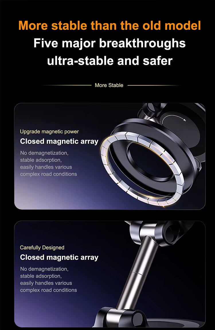 Equipped with high-grade neodymium magnets to hold your phone firmly in place—even on bumpy roads or during quick turns. -